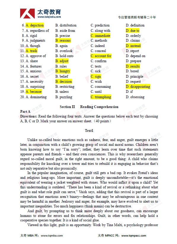2019年管理类联考MBA英语二真题及参考答案(2)