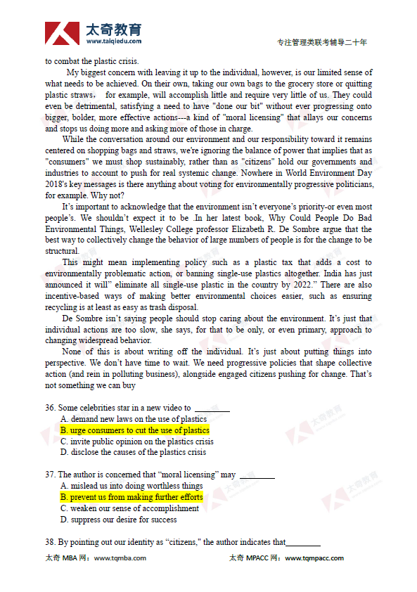 2019年管理类联考MBA英语二真题及参考答案(7)