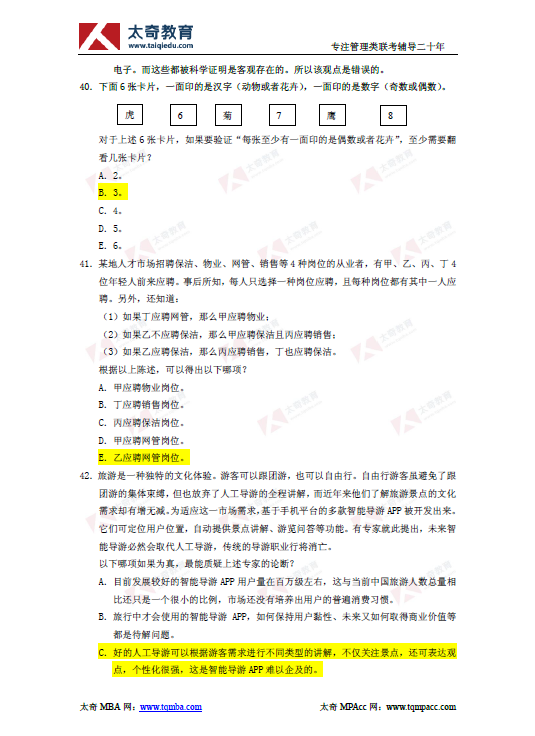 2019年管理类联考综合能力逻辑真题及参考答案(6)