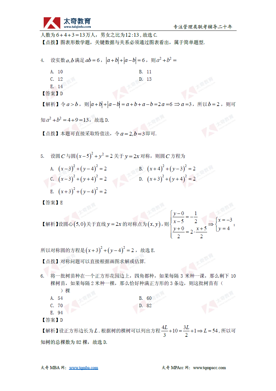 2019年管理类联考数学真题+解析(太奇官方版)(2)