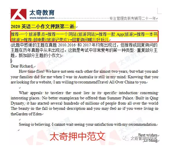 喜贺太奇2020管理类联考英语大小作文全部命中