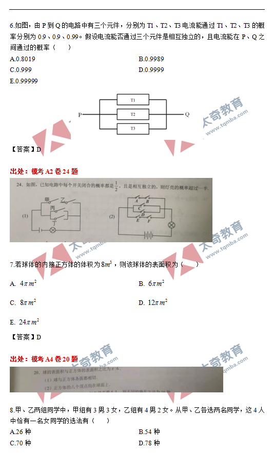 太奇2021年MBA管理类联考数学真题命中对照(3)