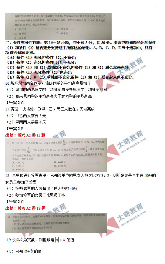 太奇2021年MBA管理类联考数学真题命中对照(7)