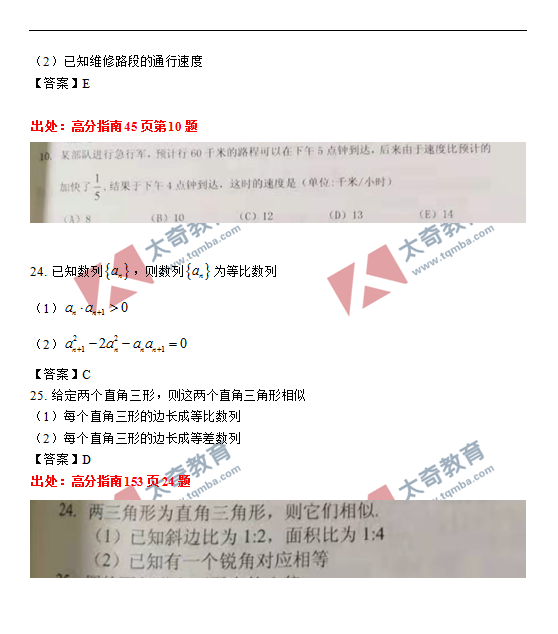 太奇2021年MBA管理类联考数学真题命中对照(9)