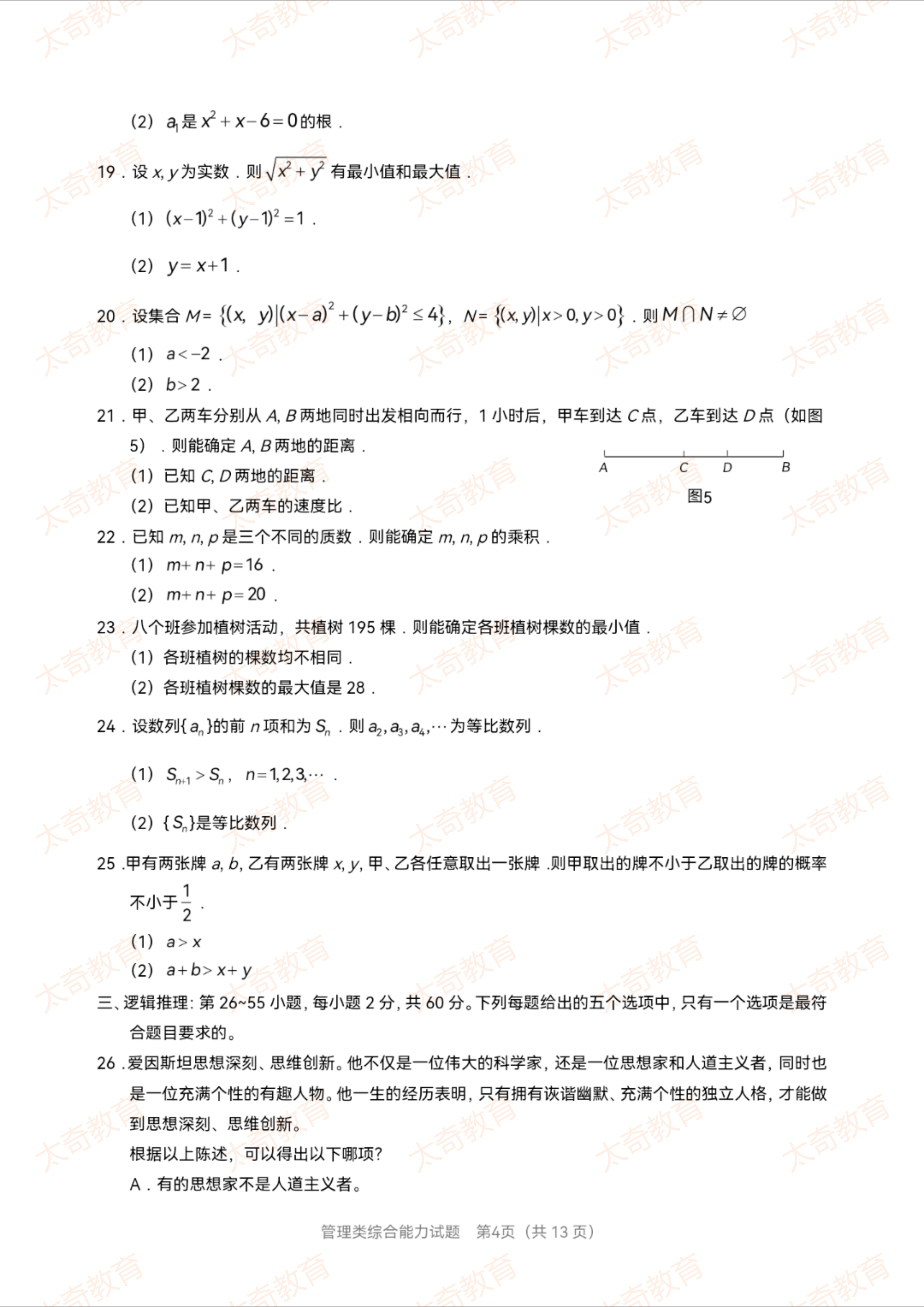 2023年MBA管理类综合真题(一)