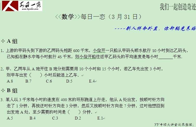 【太奇MBA 2014年3月31日】MBA数学每日一练
