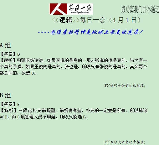 【太奇MBA 2014年4月1日】 MBA逻辑每日一练