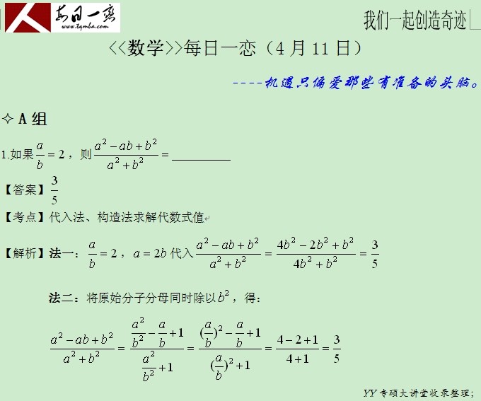 【太奇MBA 2014年4月11日】 MBA数学每日一练