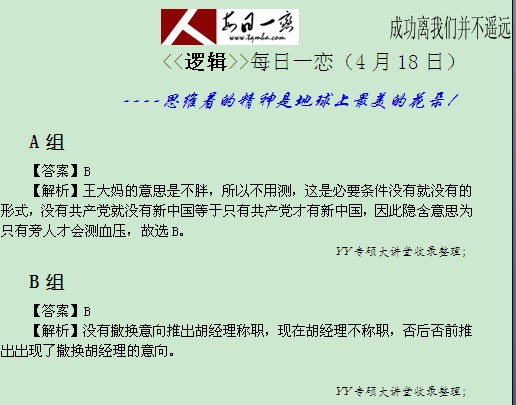 【太奇MBA 2014年4月18日】 MBA逻辑每日一练