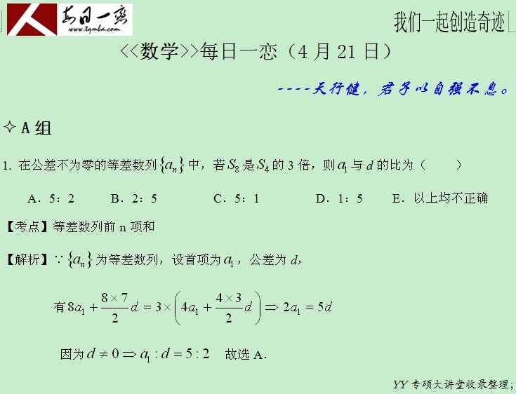 【太奇MBA 2014年4月21日】 MBA数学每日一练