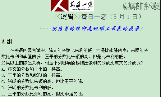 【太奇MBA 2014年5月1日】 MBA逻辑每日一练