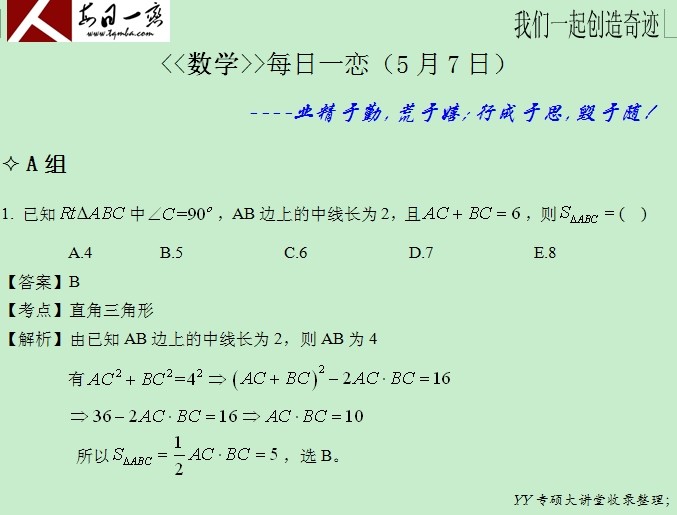 【太奇MBA 2014年5月7日】 MBA数学每日一练