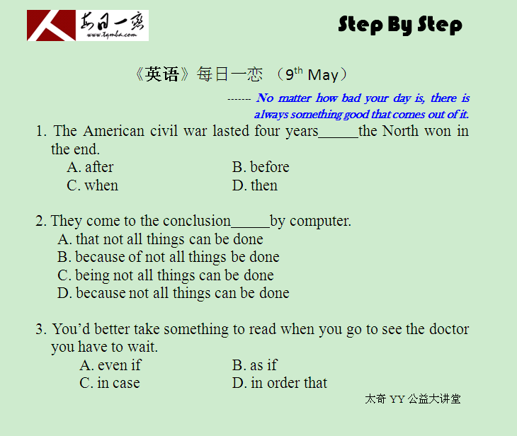 【太奇MBA 2014年5月9日】 MBA逻辑每日一练