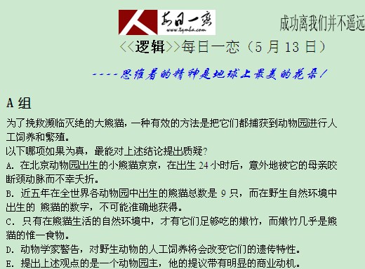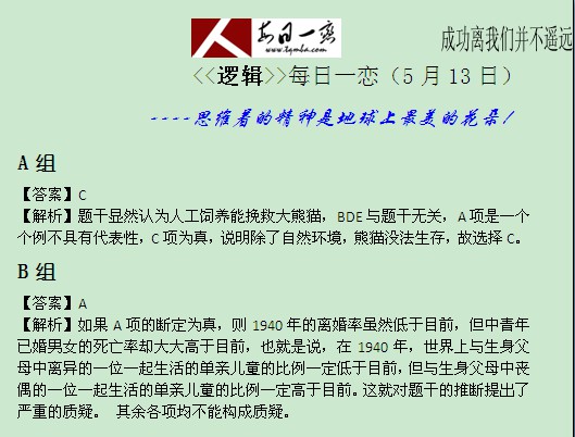 【太奇MBA 2014年5月13日】 MBA逻辑每日一练