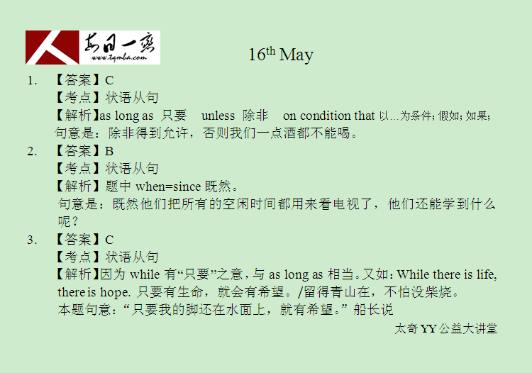 【太奇MBA 2014年5月16日】 MBA英语每日一练