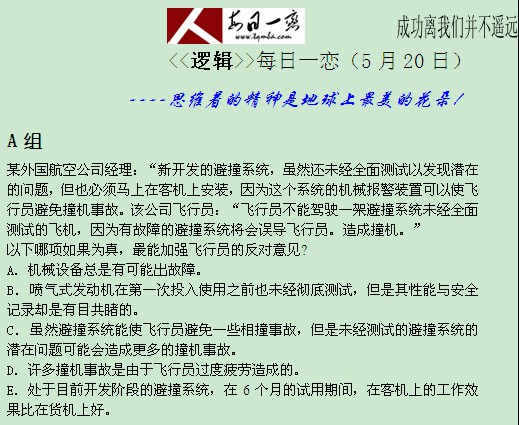 【太奇MBA 2014年5月20日】 MBA逻辑每日一练