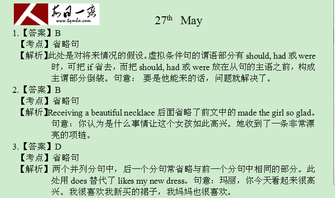【太奇MBA 2014年5月27日】 MBA英语每日一练