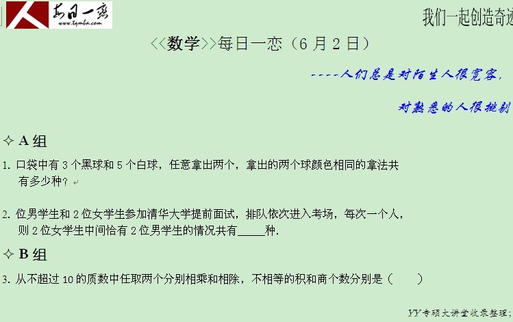 【太奇MBA 2014年6月2日】 MBA数学每日一练