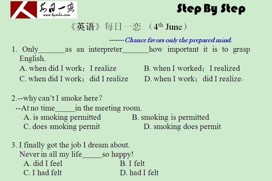 【太奇MBA 2014年6月4日】 MBA英语每日一练