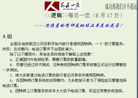 【太奇MBA 2014年6月17日】 MBA逻辑每日一练