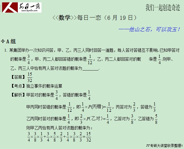 【太奇MBA 2014年6月19日】 MBA数学每日一练