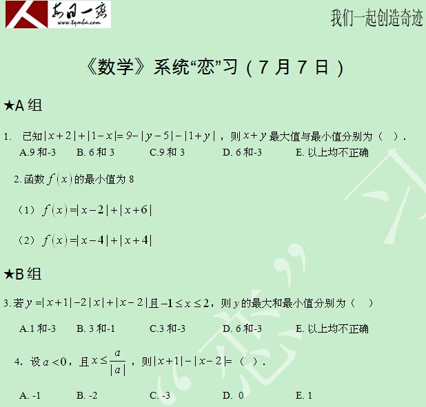 【太奇MBA 2014年7月7日】 MBA数学每日一练