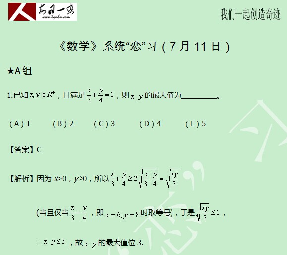 【太奇MBA 2014年7月14日】MBA数学每日一练