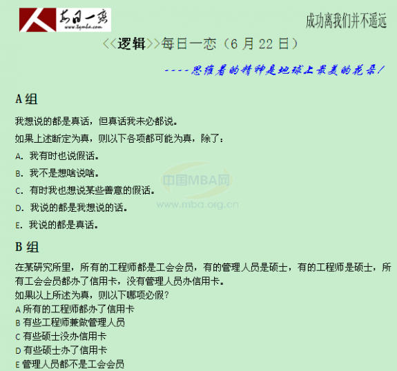 【太奇MBA 2015年6月22日】MBA英语每日一练