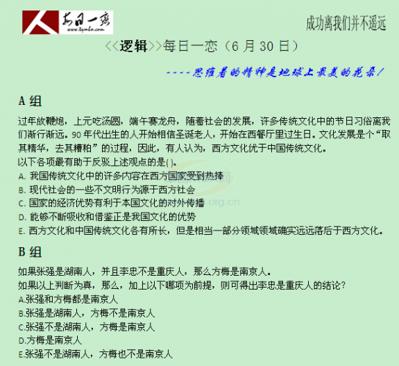 【太奇MBA 2015年6月30日】MBA逻辑每日一练