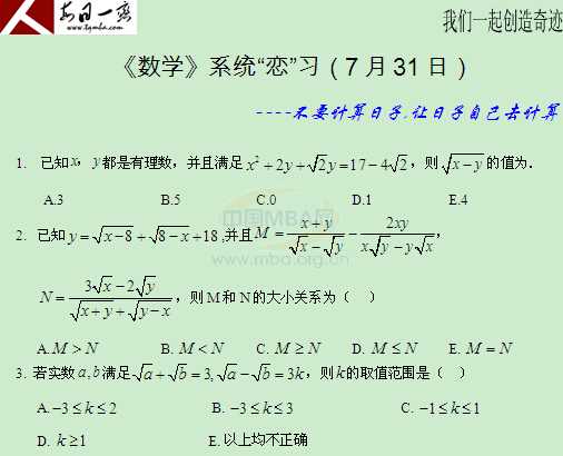 【太奇MBA 2015年7月31日】MBA数学每日一练