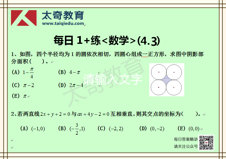 太奇MBA管理类联考数学每日一练 4-2