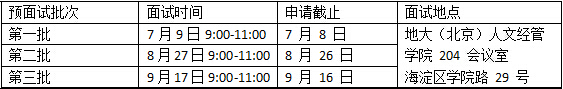 预面试批次及时间、地点一览表