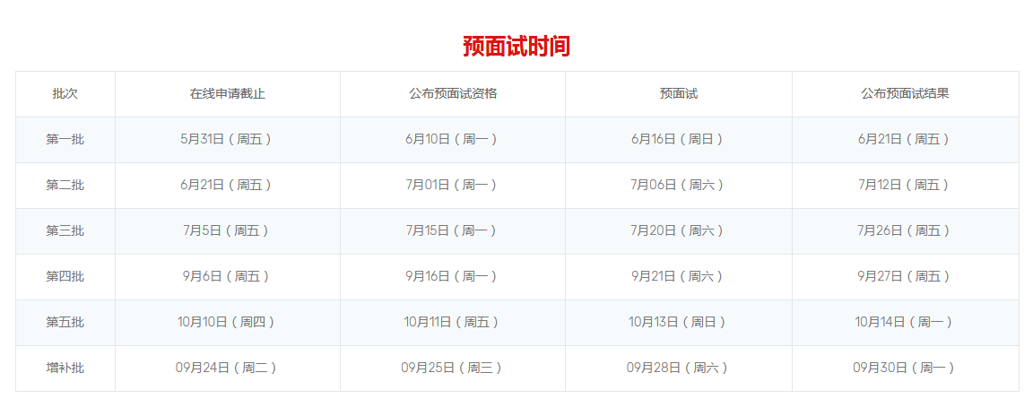 中国传媒大学MBA预面试每年5月开始,考生可以根据自己的时间选择合适的批次。报名预面试后请牢记面试申请号。