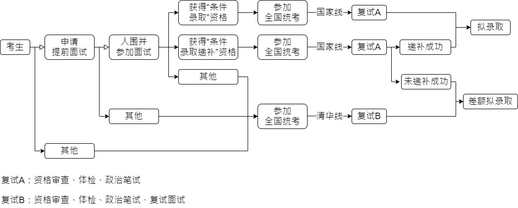 考生可通过参加提前面试走提前面试批,或直接参加联考走普通批进行报考,具体流程见下图: