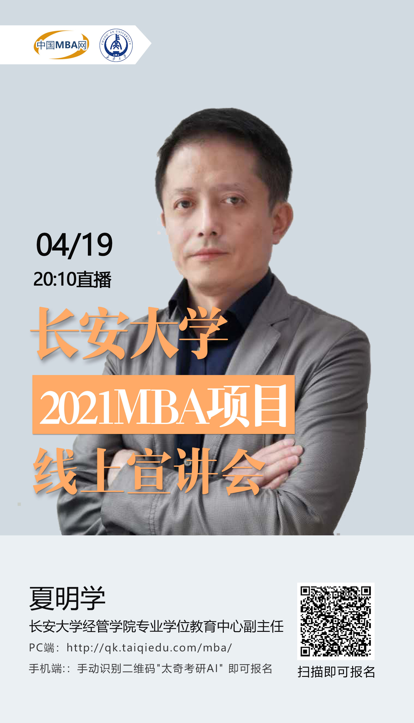 2021年长安大学MBA/EMBA/MEM教育巡展暨招生政策发布会(直播)
