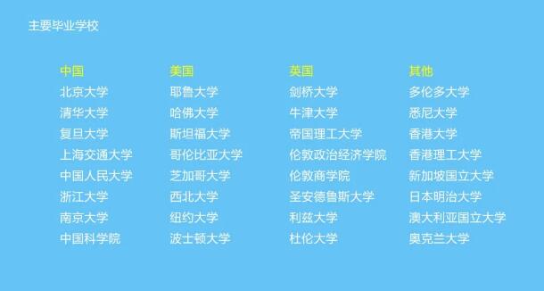 从名校海归毕业生到各行各业的企业高管;从金融、互联网领域再到影视界的明星;从创业新势力到二代接班人,长江商学院作为杰出企业家、商界精英、以及新生代经济颠覆力量的共同选择,其校友长期以来被称为“金字塔顶端的全球商界领袖”。